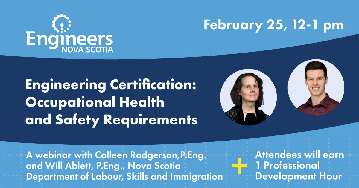 This recorded webinar examines Occupational Health and Safety legislative and regulatory requirements that involve engineering certification. Presented by Colleen Rodgerson, P.Eng., CRSP, and Will Ablett, P.Eng., from the Nova Scotia Department of Labour, Skills and Immigration, the session explains which OHS regulations require certification by a professional engineer and how those requirements connect across different workplace situations.